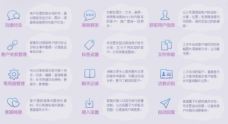 随着互联网的发展及网络营销模式重要性的凸显,在线客服系统 会成为网络营销的重要工具,也是提升企业形象、加强企业与访客互动的必备工具;如今,微信迅速崛起,商家都把店铺搬进了 公众账号,而微盟微客服系统,就是一款为微信商家打造的实时 沟通软件,让商家可以分享微信6亿用户,创造无限商机。
