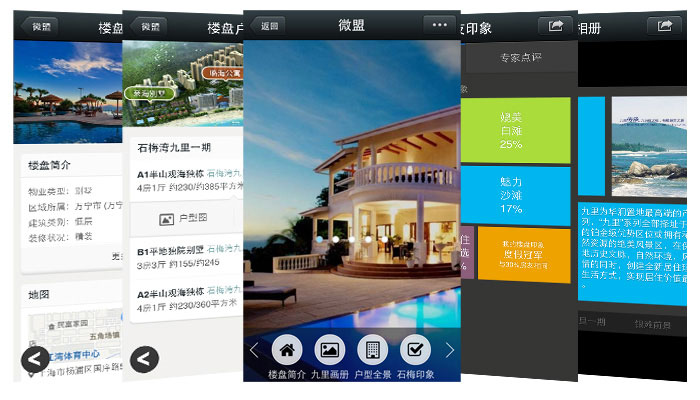 微房产是硕思微信通平台打造的一款全新超炫酷的房产官方网站,其功能非常强大,包含了楼盘介绍、子楼盘管理、户型介绍及户型图、楼盘相册、房友印象以及专家点评等功能,更有360度全景看房超强大功能震撼登场!花几分钟时间即可打造微房产官网。