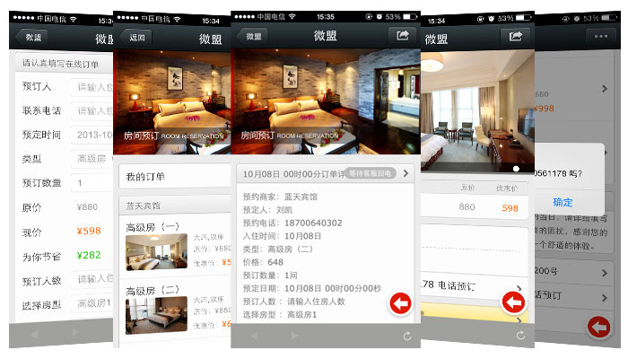 微酒店提供了在线预订、在线支付、库存管理、消息管理、门店管理、用户管理、数据统计等功能,不仅方便商家快捷的管理用户信息,也全面提升了用户在线预订、在线查询的用户体验。