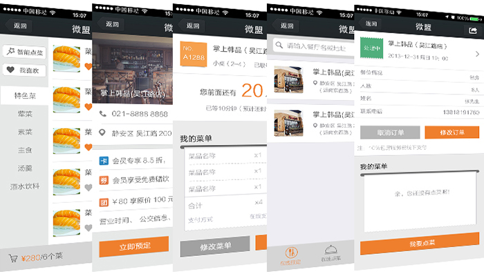 优势:能有效提高用户体验和点菜效率,节约纸张,减少员工工作量。餐厅可以在微点菜后台设置自己餐馆的菜品,顾客在来到店铺之前或在店里都可以点菜。