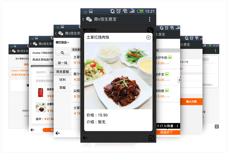 微信版“淘点点”,操作简单,管理方便,同时帮助餐饮企业让粉丝转为门户客人,让门店客人转为长期客户!体验方法:关注硕思微信通官方微信,回复“微外卖”体验。