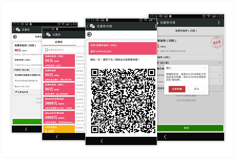 优势:通过微信公众号发放优惠券,信息直达顾客手机,省去优惠券发行成本;信息还可以通过微信朋友圈广泛传播,吸引更多顾客进店消费。