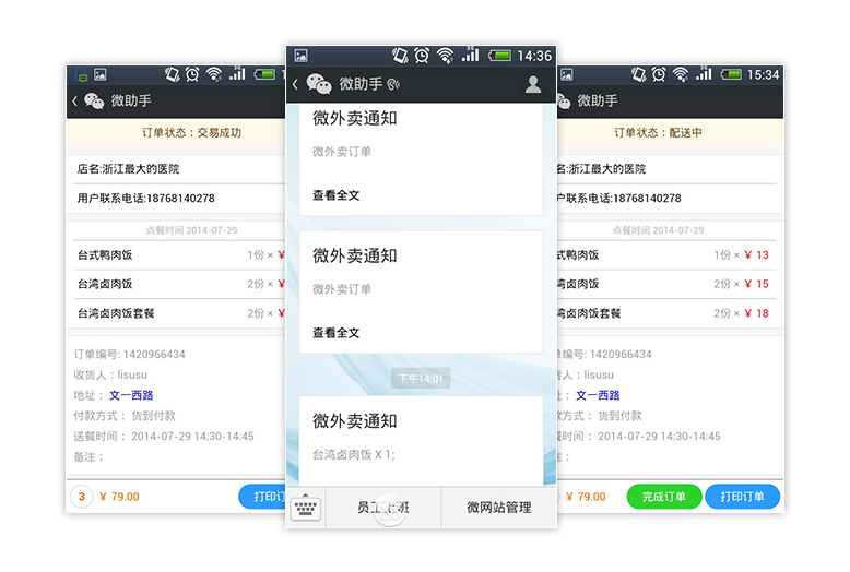订单通知、查询、处理,数据统计,员工管理,